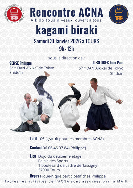 Aikido avec Philippe Sense (5éme dan Aikikai Tokyo Shidoin) et Jean-Paul Desloges (5éme dan Aikikai Tokyo Shidoin) :