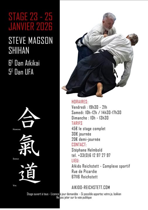Aikido avec Philippe Sense (5éme dan Aikikai Tokyo Shidoin) et Jean-Paul Desloges (5éme dan Aikikai Tokyo Shidoin) :